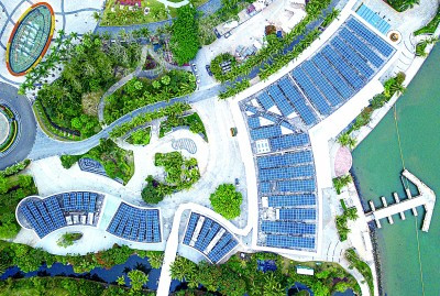 近年来,我国不断探索创新绿色发展模式,积极参与全球绿色低碳转型。图为博鳌亚洲论坛新闻中心及配楼屋顶的光伏设备。新华社发